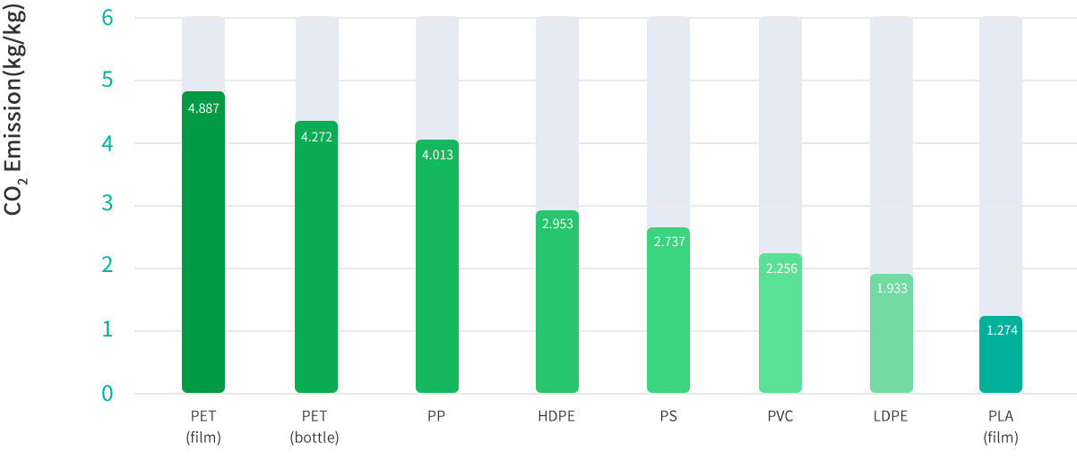 数据来源欧洲塑料:聚合物生产过程二氧化碳排放对比