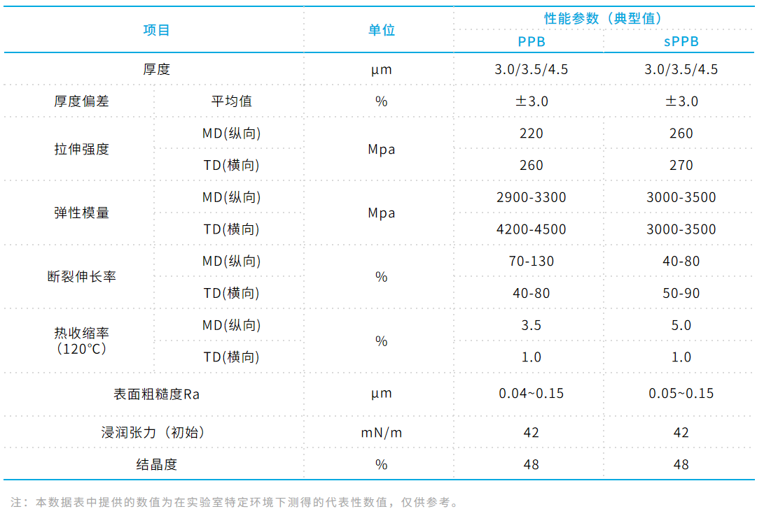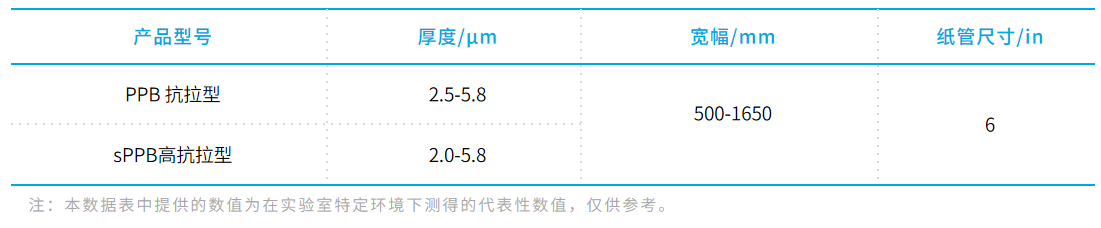 原料:聚丙烯(PP);工艺:双向拉伸;电晕处理:单面